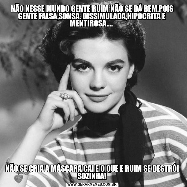 NÃO NESSE MUNDO GENTE RUIM NÃO SE DÁ BEM,POIS GENTE FALSA,SONSA, DISSIMULADA,HIPÓCRITA E MENTIROSA.... NÃO SE CRIA A MÁSCARA CAI E O QUE E RUIM SE DESTRÓI SOZINHA!
