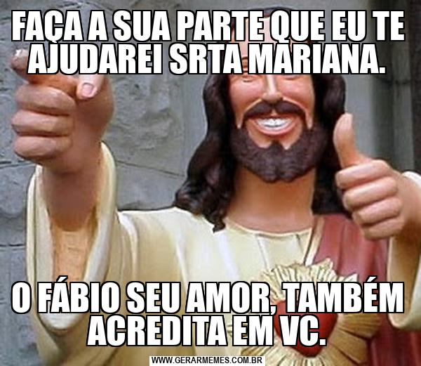FAÇA A SUA PARTE QUE EU TE AJUDAREI SRTA MARIANA. O FÁBIO SEU AMOR, TAMBÉM ACREDITA EM VC.