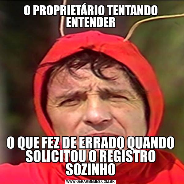 O PROPRIETÁRIO TENTANDO ENTENDER O QUE FEZ DE ERRADO QUANDO SOLICITOU O REGISTRO SOZINHO
