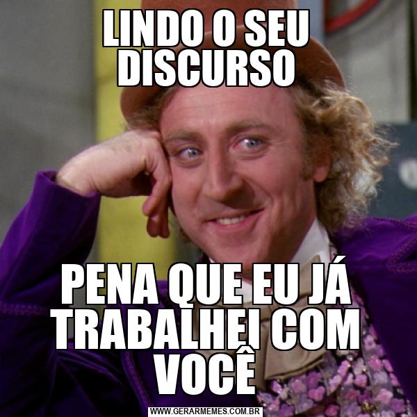LINDO O SEU DISCURSO PENA QUE EU JÁ TRABALHEI COM VOCÊ