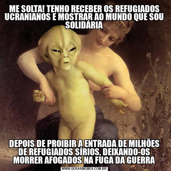 ME SOLTA! TENHO RECEBER OS REFUGIADOS UCRANIANOS E MOSTRAR AO MUNDO QUE SOU SOLIDÁRIA DEPOIS DE PROIBIR A ENTRADA DE MILHÕES DE REFUGIADOS SÍRIOS, DEIXANDO-OS MORRER AFOGADOS NA FUGA DA GUERRA