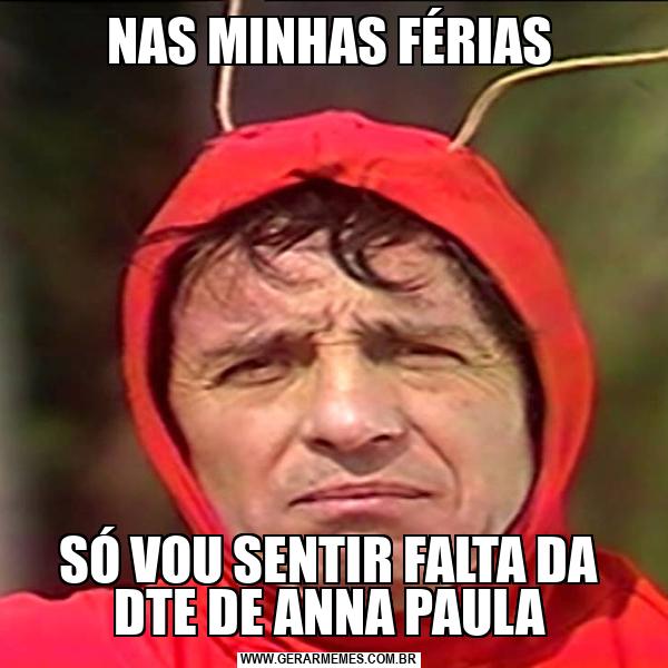 NAS MINHAS FÉRIAS SÓ VOU SENTIR FALTA DA DTE DE ANNA PAULA