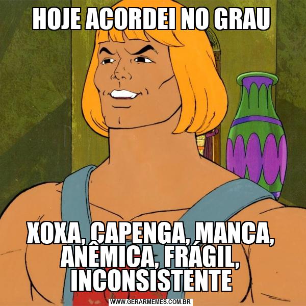 HOJE ACORDEI NO GRAU XOXA, CAPENGA, MANCA, ANÊMICA, FRÁGIL, INCONSISTENTE