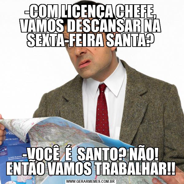 -COM LICENÇA CHEFE, VAMOS DESCANSAR NA SEXTA-FEIRA SANTA? -VOCÊ É SANTO? NÃO! ENTÃO VAMOS TRABALHAR!!