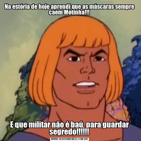 Na estória de hoje aprendi que as máscaras sempre caem Motinha!!! E que militar não é baú, para guardar segredo!!!!!!