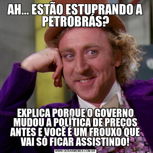 AH... ESTÃO ESTUPRANDO A PETROBRÁS? EXPLICA PORQUE O GOVERNO MUDOU A POLÍTICA DE PREÇOS ANTES E VOCÊ É UM FROUXO QUE VAI SÓ FICAR ASSISTINDO!