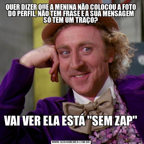 QUER DIZER QUE A MENINA NÃO COLOCOU A FOTO DO PERFIL, NÃO TEM FRASE E A SUA MENSAGEM SÓ TEM UM TRAÇO? VAI VER ELA ESTÁ 'SEM ZAP'