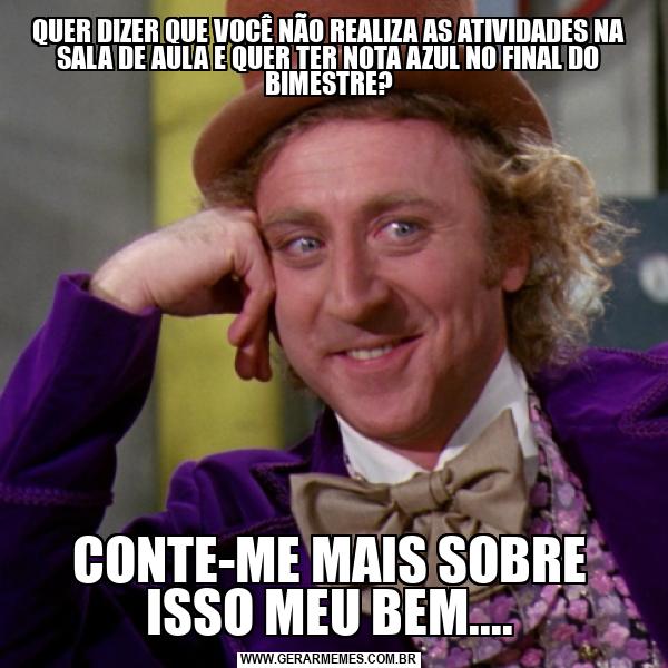 QUER DIZER QUE VOCÊ NÃO REALIZA AS ATIVIDADES NA SALA DE AULA E QUER TER NOTA AZUL NO FINAL DO BIMESTRE? CONTE-ME MAIS SOBRE ISSO MEU BEM....