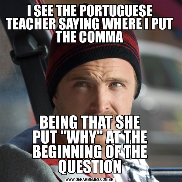 I SEE THE PORTUGUESE TEACHER SAYING WHERE I PUT THE COMMA BEING THAT SHE PUT "WHY" AT THE BEGINNING OF THE QUESTION