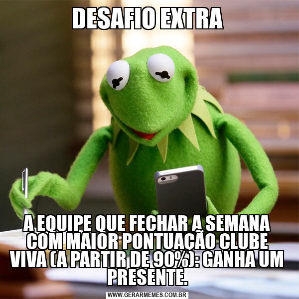 DESAFIO EXTRA A EQUIPE QUE FECHAR A SEMANA COM MAIOR PONTUAÇÃO CLUBE VIVA (A PARTIR DE 90%): GANHA UM PRESENTE.