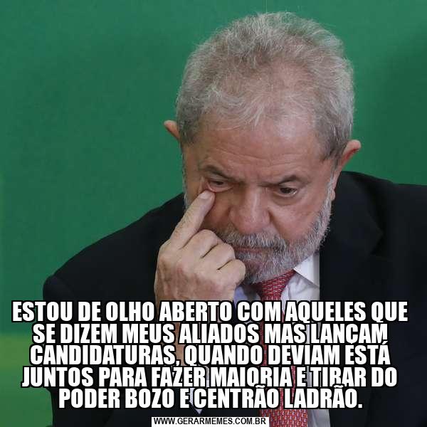 ESTOU DE OLHO ABERTO COM AQUELES QUE SE DIZEM MEUS ALIADOS MAS LANÇAM CANDIDATURAS, QUANDO DEVIAM ESTÁ JUNTOS PARA FAZER MAIORIA E TIRAR DO PODER BOZO E CENTRÃO LADRÃO.
