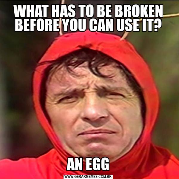 WHAT HAS TO BE BROKEN BEFORE YOU CAN USE IT? AN EGG