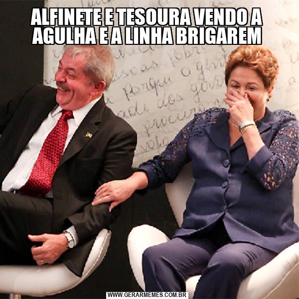 ALFINETE E TESOURA VENDO A AGULHA E A LINHA BRIGAREM