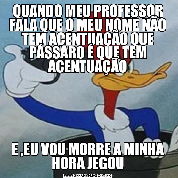 QUANDO MEU PROFESSOR FALA QUE O MEU NOME NÃO TEM ACENTUAÇÃO QUE PÁSSARO É QUE TEM ACENTUAÇÃO E ,EU VOU MORRE A MINHA HORA JEGOU