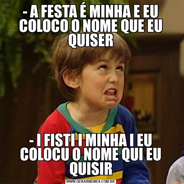 - A FESTA É MINHA E EU COLOCO O NOME QUE EU QUISER - I FISTI I MINHA I EU COLOCU O NOME QUI EU QUISIR