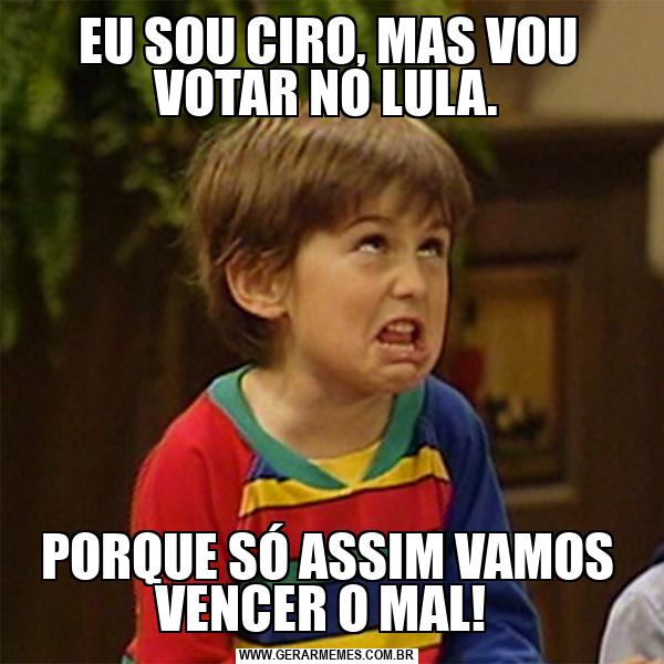 EU SOU CIRO, MAS VOU VOTAR NO LULA. PORQUE SÓ ASSIM VAMOS VENCER O MAL!