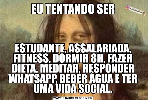 EU TENTANDO SER ESTUDANTE, ASSALARIADA, FITNESS, DORMIR 8H, FAZER DIETA, MEDITAR, RESPONDER WHATSAPP, BEBER ÁGUA E TER UMA VIDA SOCIAL.