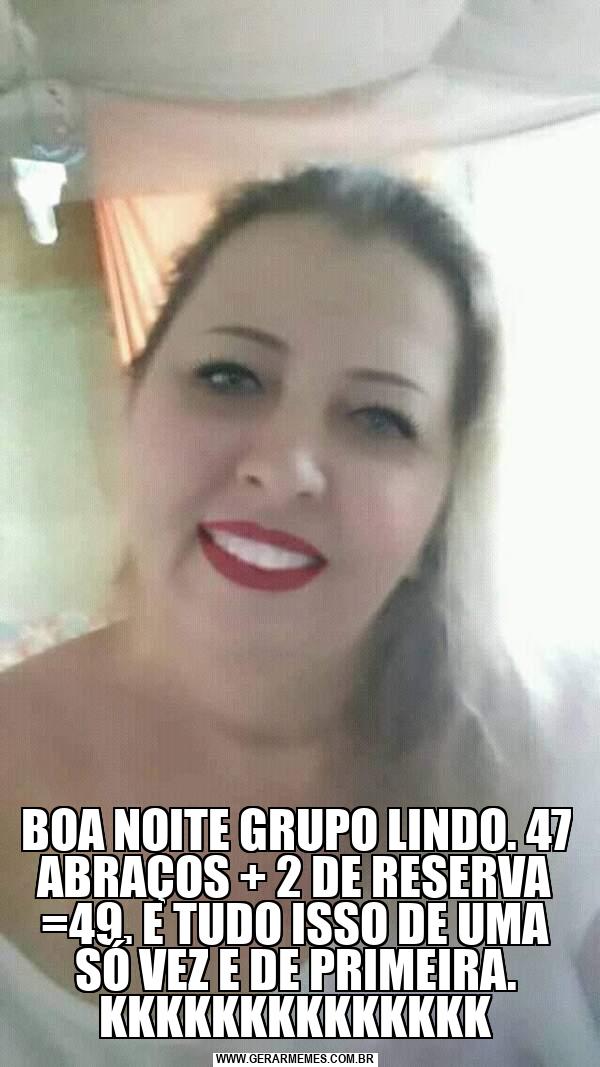 BOA NOITE GRUPO LINDO. 47 ABRAÇOS + 2 DE RESERVA =49. E TUDO ISSO DE UMA SÓ VEZ E DE PRIMEIRA. KKKKKKKKKKKKKK