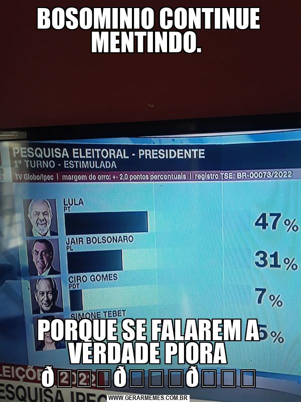 BOSOMINIO CONTINUE MENTINDO. PORQUE SE FALAREM A VERDADE PIORA