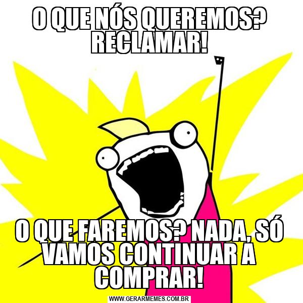 O QUE NÓS QUEREMOS? RECLAMAR! O QUE FAREMOS? NADA, SÓ VAMOS CONTINUAR A COMPRAR!