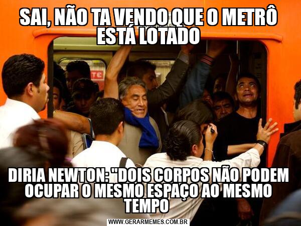SAI, NÃO TA VENDO QUE O METRÔ ESTÁ LOTADO DIRIA NEWTON: "DOIS CORPOS NÃO PODEM OCUPAR O MESMO ESPAÇO AO MESMO TEMPO