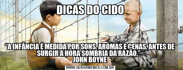 DICAS DO CIDO “A INFÂNCIA É MEDIDA POR SONS, AROMAS E CENAS, ANTES DE SURGIR A HORA SOMBRIA DA RAZÃO.” JOHN BOYNE