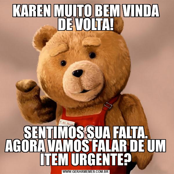 KAREN MUITO BEM VINDA DE VOLTA! SENTIMOS SUA FALTA. AGORA VAMOS FALAR DE UM ITEM URGENTE?