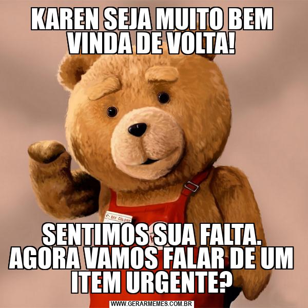 KAREN SEJA MUITO BEM VINDA DE VOLTA! SENTIMOS SUA FALTA. AGORA VAMOS FALAR DE UM ITEM URGENTE?