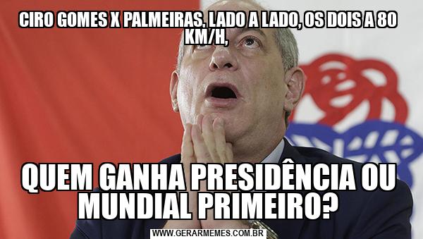 CIRO GOMES X PALMEIRAS, LADO A LADO, OS DOIS A 80 KM/H, QUEM GANHA PRESIDÊNCIA OU MUNDIAL PRIMEIRO?