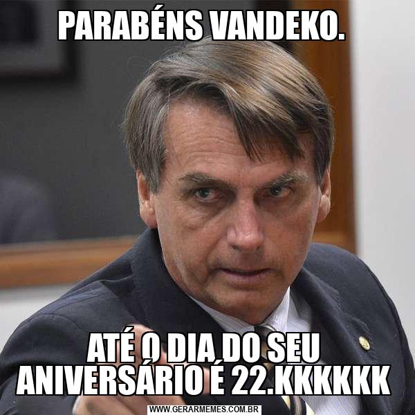 PARABÉNS VANDEKO. ATÉ O DIA DO SEU ANIVERSÁRIO É 22.KKKKKK
