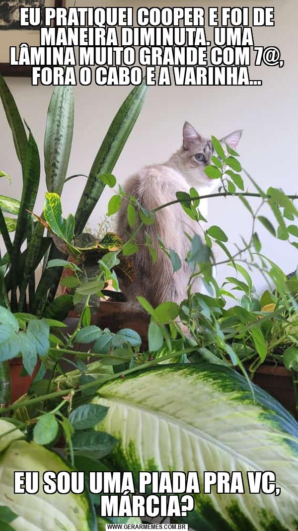 EU PRATIQUEI COOPER E FOI DE MANEIRA DIMINUTA. UMA LÂMINA MUITO GRANDE COM 7@, FORA O CABO E A VARINHA... EU SOU UMA PIADA PRA VC, MÁRCIA?