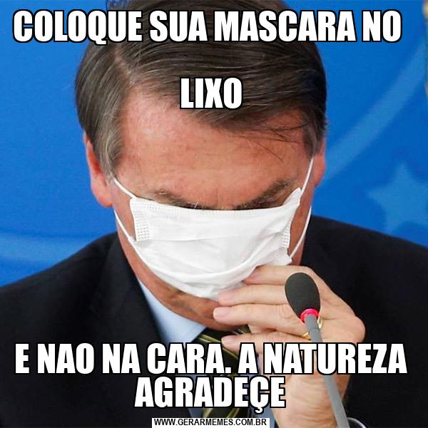 COLOQUE SUA MASCARA NO LIXO E NAO NA CARA. A NATUREZA AGRADEÇE