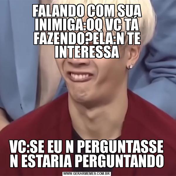 FALANDO COM SUA INIMIGA:OQ VC TÁ FAZENDO?ELA:N TE INTERESSA VC:SE EU N PERGUNTASSE N ESTARIA PERGUNTANDO