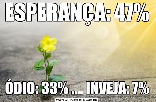 ESPERANÇA: 47% ÓDIO: 33% .... INVEJA: 7%