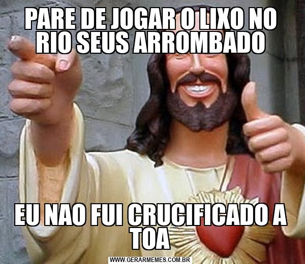 PARE DE JOGAR O LIXO NO RIO SEUS ARROMBADO EU NAO FUI CRUCIFICADO A TOA
