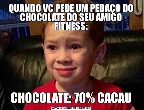 QUANDO VC PEDE UM PEDAÇO DO CHOCOLATE DO SEU AMIGO FITNESS: CHOCOLATE: 70% CACAU