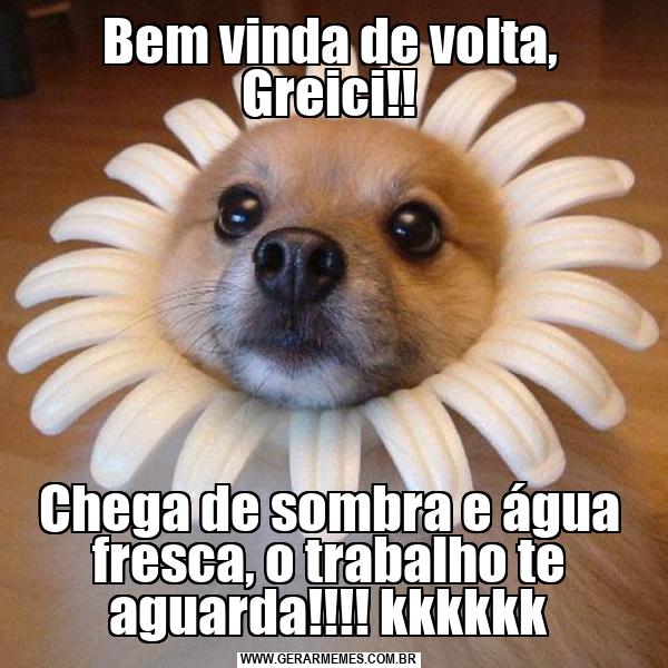Bem vinda de volta, Greici!! Chega de sombra e água fresca, o trabalho te aguarda!!!! kkkkkk