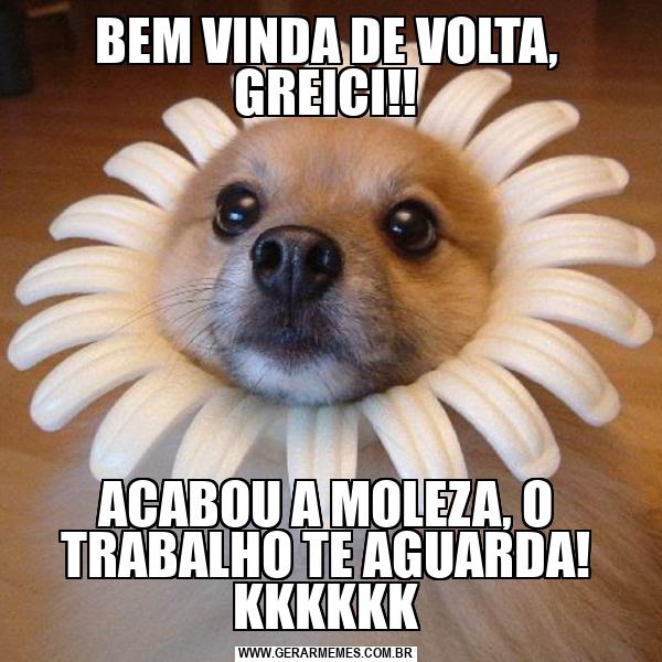 BEM VINDA DE VOLTA, GREICI!! ACABOU A MOLEZA, O TRABALHO TE AGUARDA! KKKKKK
