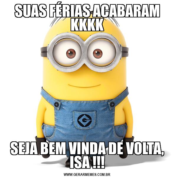 SUAS FÉRIAS ACABARAM KKKK SEJA BEM VINDA DE VOLTA, ISA !!!