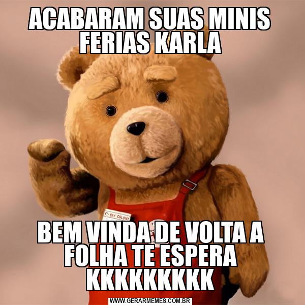 ACABARAM SUAS MINIS FERIAS KARLA BEM VINDA DE VOLTA A FOLHA TE ESPERA KKKKKKKKK