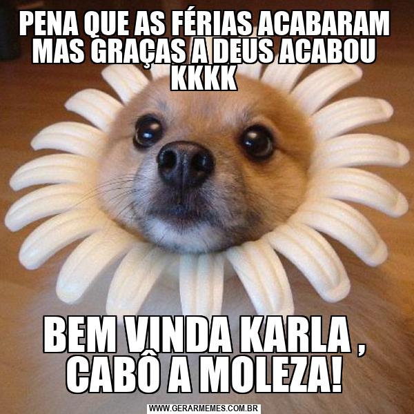 PENA QUE AS FÉRIAS ACABARAM MAS GRAÇAS A DEUS ACABOU KKKK BEM VINDA KARLA , CABÔ A MOLEZA!