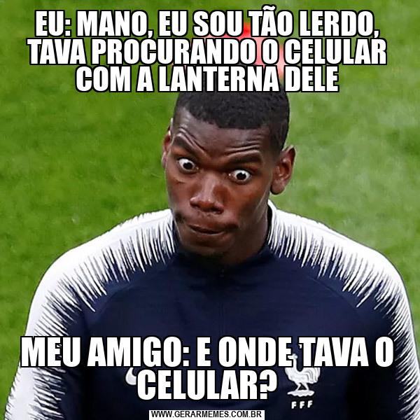 EU: MANO, EU SOU TÃO LERDO, TAVA PROCURANDO O CELULAR COM A LANTERNA DELE MEU AMIGO: E ONDE TAVA O CELULAR?