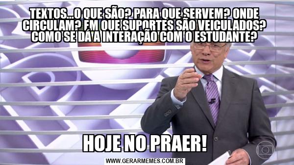 TEXTOS...O QUE SÃO? PARA QUE SERVEM? ONDE CIRCULAM? EM QUE SUPORTES SÃO VEICULADOS? COMO SE DÁ A INTERAÇÃO COM O ESTUDANTE? HOJE NO PRAER!