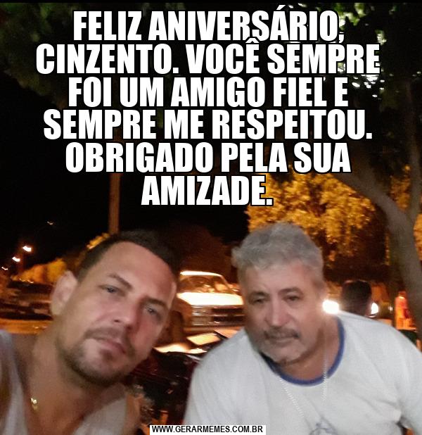 FELIZ ANIVERSÁRIO, CINZENTO. VOCÊ SEMPRE FOI UM AMIGO FIEL E SEMPRE ME RESPEITOU. OBRIGADO PELA SUA AMIZADE.
