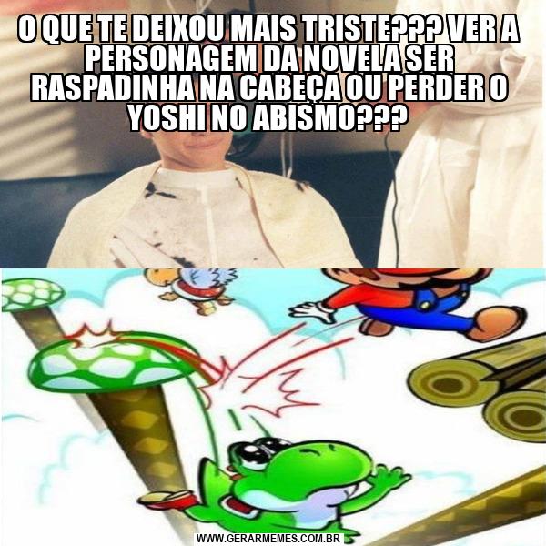 O QUE TE DEIXOU MAIS TRISTE??? VER A PERSONAGEM DA NOVELA SER RASPADINHA NA CABEÇA OU PERDER O YOSHI NO ABISMO???