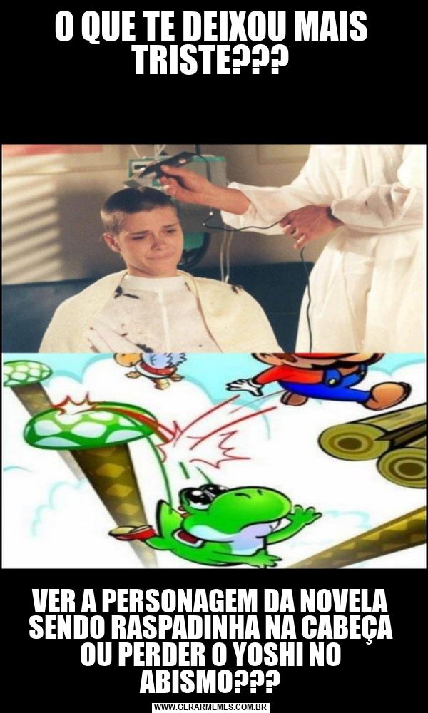 O QUE TE DEIXOU MAIS TRISTE??? VER A PERSONAGEM DA NOVELA SENDO RASPADINHA NA CABEÇA OU PERDER O YOSHI NO ABISMO???