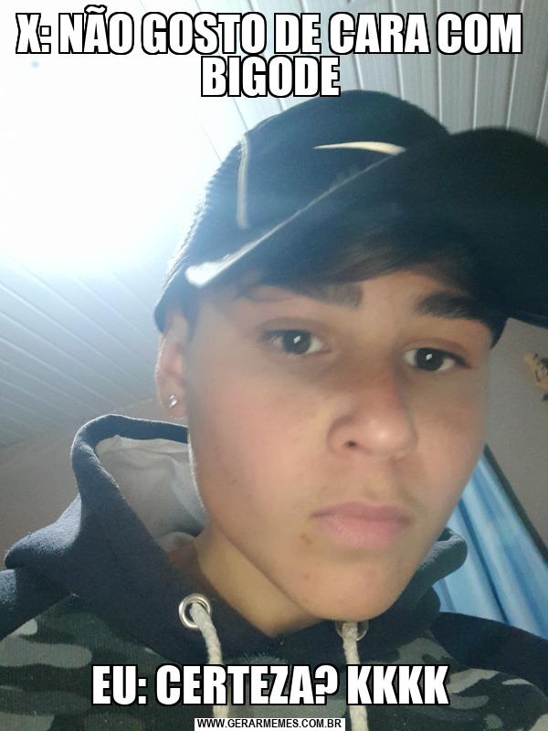 X: NÃO GOSTO DE CARA COM BIGODE EU: CERTEZA? KKKK