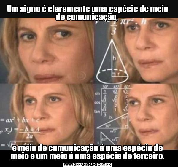 Um signo é claramente uma espécie de meio de comunicação, e meio de comunicação é uma espécie de meio e um meio é uma espécie de terceiro.