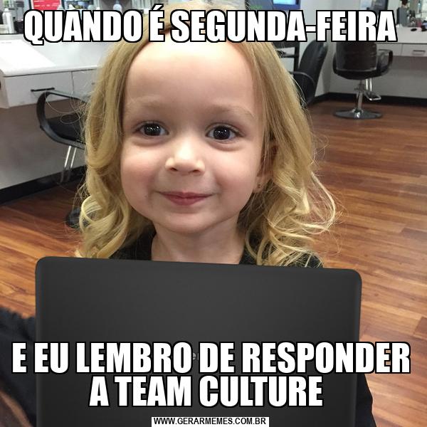 QUANDO É SEGUNDA-FEIRA E EU LEMBRO DE RESPONDER A TEAM CULTURE