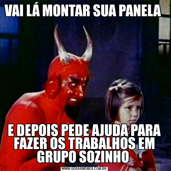 VAI LÁ MONTAR SUA PANELA E DEPOIS PEDE AJUDA PARA FAZER OS TRABALHOS EM GRUPO SOZINHO
